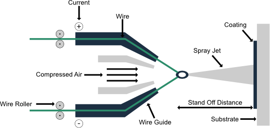 Hannecard - ASB's twin wire arc thermal spray equipment uses two wires of a chosen composition, which are brought together in the gun and electrically charged to induce melting. The resulting molten material is then propelled onto the work area. Using electric wire arc spray allows thicker build-up, making it an excellent system to use for dimensional repair. The coatings produced are inherently somewhat porous, which allows lubrication to seep into the pores, providing excellent benefits for many applications.